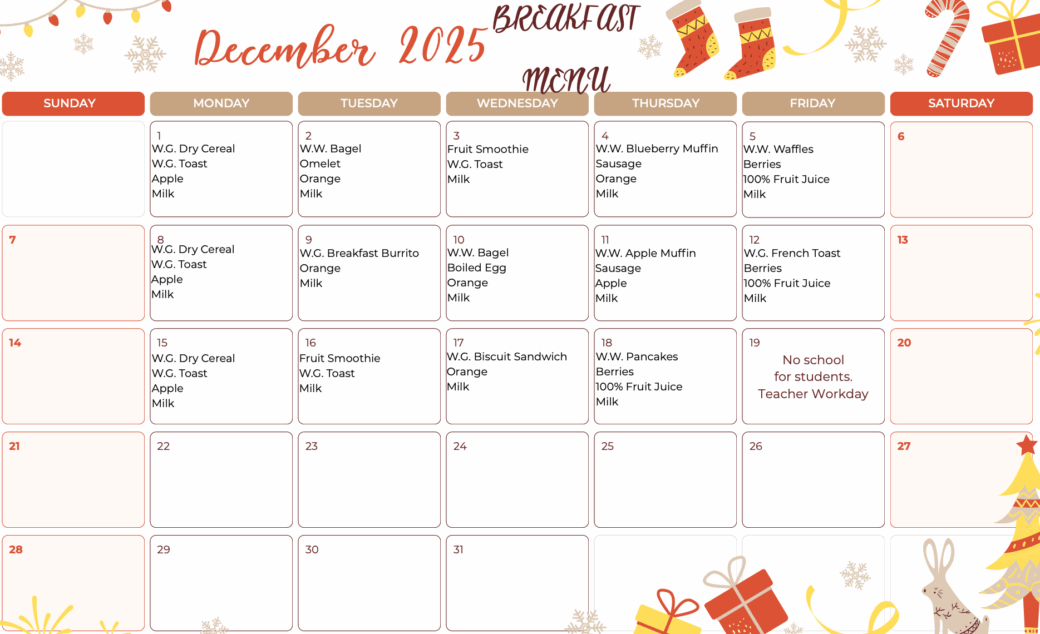 December 2025 Breakfast Menu